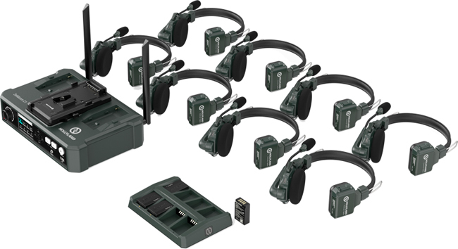 Zestaw słuchawkowy ma zapasowy akumulator litowy, ładujący się w pelni do 2,5 h, co umożliwia maksymalnie 10 h pracy zestawu słuchawkowego (5–6 h dla nadrzędnego zestawu słuchawkowego). Można połączyć ze sobą maksymalnie 6 zestawów słuchawkowych.
