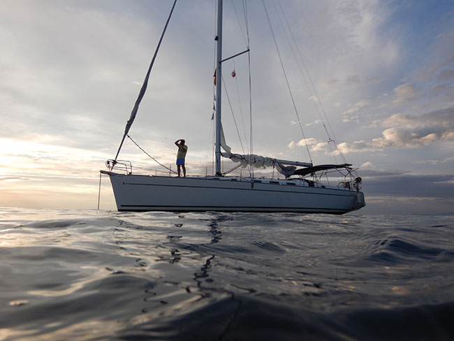 ![]() Po burzliwej przygodzie wody otaczające Egidę uspokoiły się, a my mogliśmy, za pomocą Nikona W300, sfotografować z wody jacht w całej okazałośc. fot. K. Patrycy