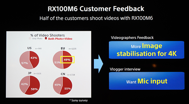 Sony wykonało sondę wśród użytkowników Sony RX 100 VI Sony RX100 VII jest lekki i nieduży: waży około 302 g przy wymiarach 102 x 58 x 43 mm[xv]. Oznacza to, że można go stale mieć przy sobie i zainstalować tam, gdzie nie zmieszczą się większe modele.