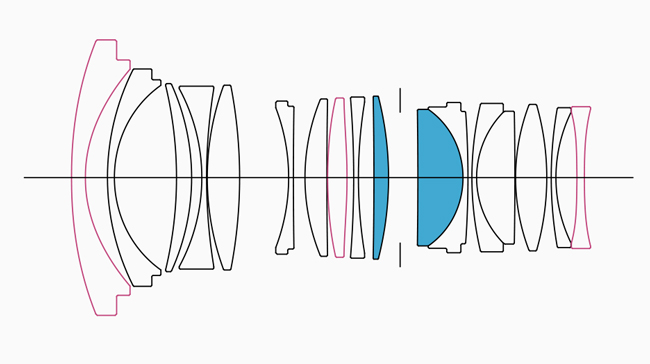 ![]() SIGMA 20 mm f/1,4 DG DN | Art ma układ optyczny składający się z 17 elementów ułożonych w 15 grupach.