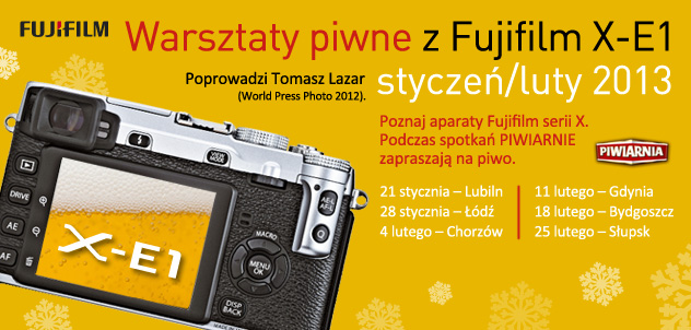 Podczas warsztatów Tomasz Lazar opowie o swoich doświadczeniach z aparatem Fujifilm X-E1, którym robił zdjęcia w piwiarniach i pubach w czeskiej Pradze. Będzie to inspiracja dla uczestników spotkania – w drugiej jego części odbędą się testy aparatów Fujifilm serii X z udziałem modelek.