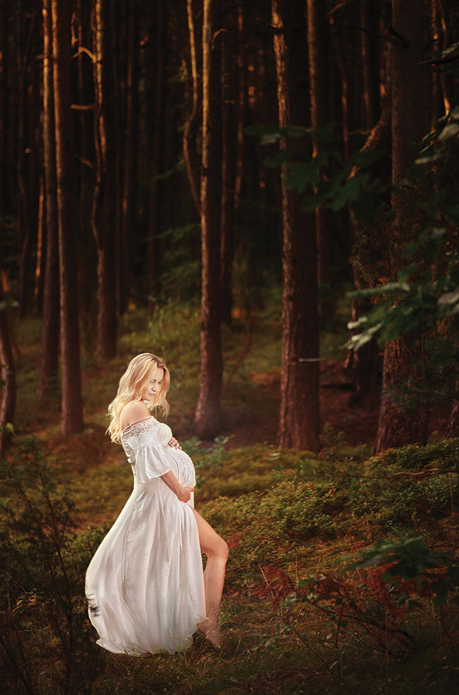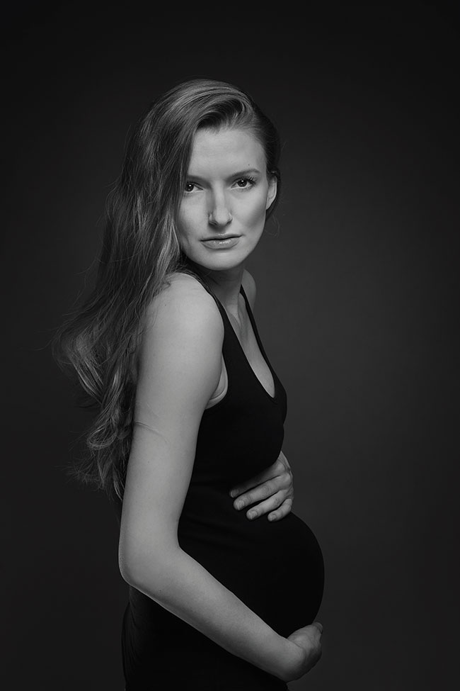 Klasyczny ciążowy portret kobiety – przy użyciu obiektywu 105 mm oraz aparatu Nikon D3s. fot. Grzegorz „Moment” Płaczek
