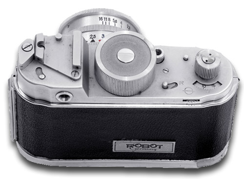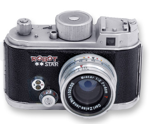 Zanim jednakże pojawiły się mikrosilniczki elektryczne, które przesuwają film w obecnych aparatach, najpopularniejszy był napęd przy pomocy mechanizmu zegarowego. Taki napęd zastosował w swojej bardzo udanej serii aparatów znakomity producent z Niemiec - firma Robot Bering. Pierwszy Robot pojawił się na rynku w roku 1934. Opisywany model Robot Star pochodzi z roku 1952.