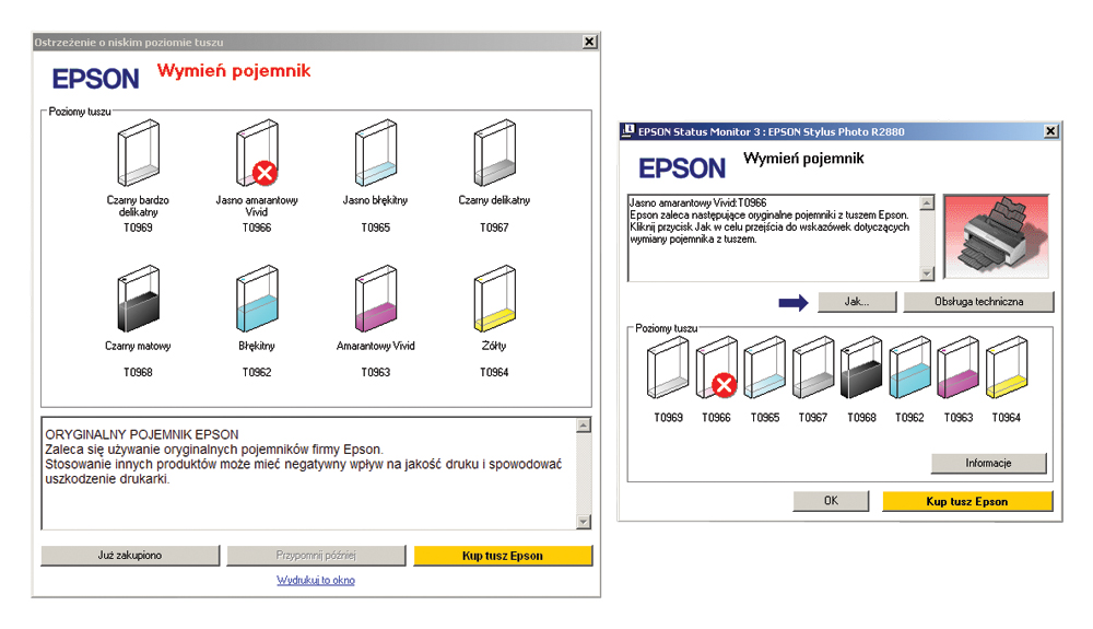Koszty eksploatacji Przy wyborze tego typu drukarki trzeba brać pod uwagę nie tylko jej cenę, ale też cenę materiałów eksploatacyjnych. Koszta te nie są małe. Wszystkie tusze mają tę samą pojemność 11,4 ml. Ich cena jest mniejsza od ceny tuszy przeznaczonych do modelu 2400.