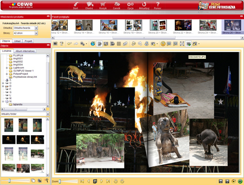 ![]() Program do projektowania fotoksiążki umożliwia nam niemal dowolną jej aranżację. Sami wybieramy liczbę zdjęć na stronie oraz ich układ względem siebie. Podczas produkcji fotoksiążki, do celu – jeśli zechcemy – poprowadzi nas komputerowy asystent, a my później, po wstępnym ułożeniu zdjęć przez program, wprowadzimy drobne lub większe korekty w tym, co wykonał on sam. Możemy dodać do zdjęć tekst. Zmienić ich wielkość i pozycję w książce (kąt w stosunku do podstawy książki). Określić, czy zdjęcie ma być na spad, czy też nie? Czy ma zajmować jedną lub dwie strony, itp. Można do zdjęć dodać podcienie, różnego rodzaju ramki i tła, czy też zlikwidować efekt czerwonych oczu. To wszystko możliwe jest za sprawą przystępnie i w miarę intuicyjnie opisanego interfejsu użytkownika.
