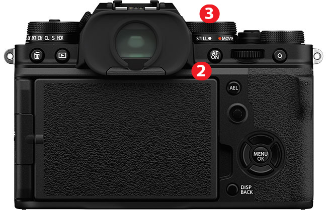 Aparat występuje w wersji srebrno-czarnej i czarnej. Model X-T4 odziedziczył po Fujifilm X-T3 kształt przycisków na tylnym panelu (z wyjątkiem nieco bardziej zaokrąglonego przycisku AF-ON [2]), a także wygodną obsługę przedniego i tylnego pokrętła, które reagują na zmianę ustawienia charakterystycznym kliknięciem. Zmieniono nieco opisy przycisków na tylnej ściance, na prawo od ekranu LCD, co widać na załączonych obok zdjęciach. Do dotychczasowego pokrętła znajdującego się pod pokrętłem zmiany czasów przypisano teraz funkcję przełączania między trybem fotografowania i filmowania [3].