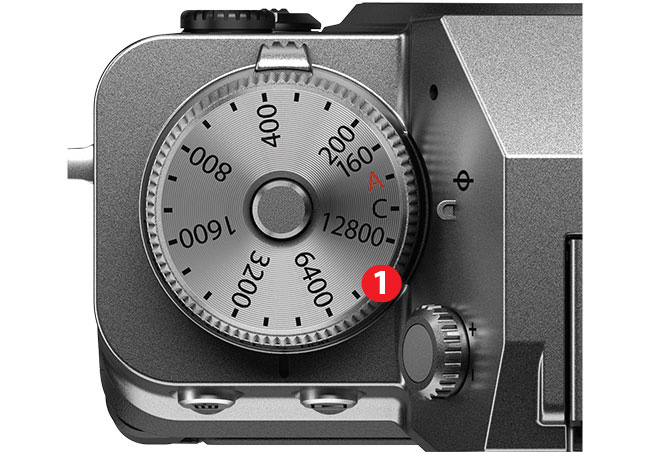W nowym flagowcu niemal w całości zachowano pozycje pokręteł na górnym panelu (po co zmieniać to co jest dobre), centralnie umieszczony wizjer EVF (patrz dalej) oraz bardzo dobrze wyprofilowany uchwyt poprawiający wygodne trzymanie aparatu w prawej dłoni. Kształt górnych pokręteł wyboru czasu otwarcia migawki i czułości jest taki sam jak w X-T3, a pokrętło korekcji ekspozycji nadal nie ma blokady zapobiegającej przypadkowemu obrotowi, ale na szczęście zmieniamy jego pozycję z wyraźnym oporem. Na pokrętle wyboru czułości ISO zmieniono tez nieznacznie oznaczenia. Nie ma już literek L i H, a w to miejsce pojawiła się litera C [1], gdzie po wybraniu pozycji z nią kojarzonej korzystamy z wcześniej wybranej preferowanej czułości ISO. To rozwiązanie jest lepsze o tyle, że jeśli mamy swoją preferowaną czułość to w tej chwili możemy z niej szybciej skorzystać przestawiając pokrętło w pozycję „C”.