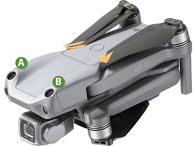 Dodatkowe czujniki przeszkód [A] [B], które usprawniają autonomiczne latanie