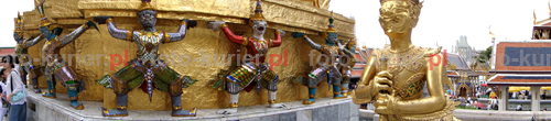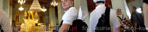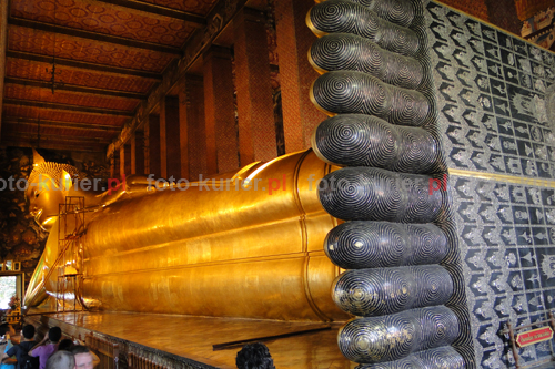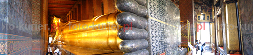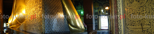 ![]() Największy na świecie pomnik leżącego Budda w świątyni Wat Pho w Bangkoku jest tak ogromny, że dopiero zastosowanie panoramy pozwoliło objąć go prawie w całości.