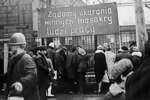 Do kiedy: 31.01.2011 Miejsce prezentacji: Dom Spotkań z Historią Ulica: Karowa/Krakowskie Przedmieście (skwer) , Miasto: 00-324 Warszawa, Telefon: 22/255 05 00, strona www: www.dsh.waw.pl/ e-mail: dsh@dsh.waw.pl Wystawa plenerowa poświęcona strajkom w Szczecinie w grudniu ’70 i styczniu ’71. Ekspozycja składa się z dotychczas niepublikowanych zdjęć, wykonanych przez funkcjonariuszy bezpieki, fotoreporterów, a także przez osoby prywatne. Swoje zbiory udostępnił również fotografik szczeciński Marek Czasnojć. ![]() Pod koniec 1970 roku w Szczecinie doszło nie tylko do krwawo stłumionych zamieszek, ale przede wszystkim do dwóch wielkich strajków. Bezpośrednią ich przyczyną była wprowadzona 12 grudnia podwyżka cen detalicznych mięsa, przetworów mięsnych oraz innych artykułów spożywczych. ![]() Strajk objął m.in. Stocznię im. A. Warskiego, Miejskie Przedsiębiorstwo Komunikacyjne, Zarząd Portu Szczecin, Zakłady Mechanizmów Samochodowych "Polmo", Zakłady Chemiczne "Police", Fabrykę Kabli w Załomiu, Fabryka Kontenerów "Unikom" pod Szczecinem, Zakłady Włókien Sztucznych ,"Wiskord", Huta Szczecin, "Gryf" i "Dana". ![]()