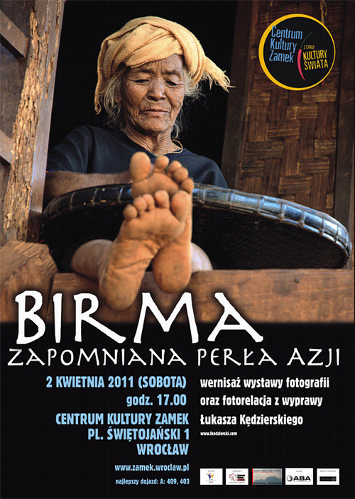 Do kiedy: 06.06.2011 Miejsce prezentacji: Centrum Kultury "Zamek" Ulica: pl. Świętojański 1 , Miasto: 54-076 Wrocław, Telefon: 71/349 35 36, strona www: www.zamek.wroclaw.pl W sobotę, 2 kwietnia, w Centrum Kultury "Zamek" odbędzie się kolejne, podróżnicze spotkanie w ramach cyklu „kultury świata”. Bohaterem wieczoru będzie Łukasz Kędzierski, który zabierze obecnych na wystawie w fascynującą wyprawę po Birmie, w której głównym środkiem transportu jest nadal wóz zaprzęgnięty w woły, gdzie asfalt to rzadkość, a kobiety malują twarz lepką mazią, powstałą ze zmieszania sproszkowanego drewna z wodą. Wernisaż: 2.04.2011, godz, 17 ![]() Birma to miejsce, gdzie elektryczność jeżeli jest to wciąż stanowi niedostępny luksus, gdzie powszechnie żuje się betel, gdzie kobiety używają thanaki, a mężczyźni chodzą w longyi. Pomimo trudów i prześladowań ze strony junty wojskowej, to właśnie ludzie tworzą najcenniejsze dobro tego kraju, które chce się znowu poczuć, które chce się po raz kolejny doświadczyć. ![]() Birma to kraj przepięknych świątyń w Bagan, to rybacy znad jeziora Inle Lake, to Złoty Kamień na górze Kyaiktiyo, to starożytne miasta w okolicach Mandalay, to Shwedagon Pagoda, lecz przede wszystkim to miejsce gdzie żyją najserdeczniejsi ludzie na świecie. ![]() Birma to kraj serdeczności, uprzejmości, bezinteresownej pomocy dla drugiego człowieka. Najważniejsze dla mieszkających tam ludzi to drugi człowiek oraz rodzina. Pomimo, że posiadają bardzo niewiele, chętnie się dzielą tym, co mają. ![]() Skąd pomysł na wyjazd do tego akurat kraju? Gdy zbierałem informacje do poprzedniego wyjazdu, do Tajlandii, oglądałem mnóstwo ciekawych zdjęć charakterystycznie wiosłujących rybaków, piękne panoramy wschodów i zachodów słońca w "krainie tysiąca pagód", ludzi charakterystycznie umalowanych czymś białym na twarzy. ![]() Dowiedziałem się wtedy że istnieje takie państwo jak Myanmar (jeszcze niedawno nazywało się po polsku Birma). Na wielu galeriach internetowych Marek pokazywał swoje perełki z kilku podróży w ten rejon Azji. Już wtedy wiedziałem, że muszę to zobaczyć. Kolejnym argumentem przechylającym szale, że jest to kraj który koniecznie trzeba odwiedzić to znikoma ( w porównaniu do Tajlandii, wg zasłyszanych informacji Tajlandie rocznie odwiedza 4 mln ludzi a Myanmar tylko ok. 40000, nie mam jak tego sprawdzić, lecz chodzi o różnice w rzędach wielkości) liczba turystów. Łukasz Kędzierski ![]() Łukasz Kędzierski o sobie: ".... urodziłem się już jakiś czas temu. cały czas próbuję walczyć z szarością dnia codziennego. Odskocznią od tego są wyjazdy oraz fotografia. Nie lubię biur podróży, zorganizowanych "wycieczek", przewodników, którzy mają ściśle określony plan i zawsze musimy pędzić, bo na coś tam nie zdążymy. Lubię być niezależnym, wolnym od wszelkich wytyczonych "standardów". W podróżach najważniejsze dla mnie są: moja kochana żona, plecak, aparat i niski budżet. Nie potrzebuję wygody, klimatyzacji, hoteli iluś tam gwiazdowych. Wystarczy zwykły, ale czysty hotel, knajpa gdzie siedzą i jedzą miejscowi. odwiedzam także miejsca bardzo popularne, no bo jak to być w Bangkoku i nie zobaczyć Grand Palace lub w Marrakeszu i nie zjeść posiłku na Dżemaa El-Fna, ale raczej stronię od dużych miast i komercji, wolę małe klimatyczne wioseczki, ze zwykłymi ludźmi jeszcze nie przesiąkniętymi ruchem turystycznym. Pracując normalnie na etacie ciężko jest wyjeżdżać na wielomiesięczne voyage, zatem pozostaje mi zawsze 26 dni urlopu, który staram się jak najlepiej wykorzystać. Zatem do wyjazdu zawsze przygotowuję się bardzo skrupulatnie, aby zobaczyć dokładnie to co chcę, a darować sobie jakieś pierdoły lub mało ciekawe miejsca. Jednak plan jest zawsze szkicem, który na miejscu przechodzi metamorfozę, bo nigdy nie wiesz co cię spotka na twojej drodze...” data dodania: 01-04-2011