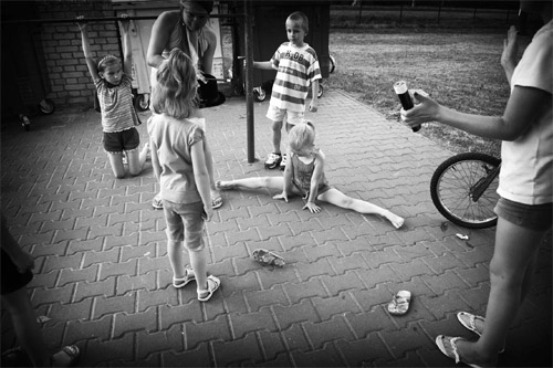Do kiedy: 30.11.2011 Miejsce prezentacji: Radzyńska Izba Regionalna Ulica: Jana Pawła II 4 , Miasto: 21-300 Radzyń Podlaski, Telefon: 083/352 73 14, Wernisaż: 10.11.2011, godz. 18 ![]() Dziecięca wyobraźnia, ich pomysłowość i rewelacyjna umiejętność współpracy w grupie (tak, tak!)to przymioty, które potrafią zatykać dech w piersiach. Mogłem się o tym przekonać obserwując z okna mojego mieszkania niezwykłą w dzisiejszych czasach sytuację - zabawę pod trzepakiem. Nie mogłem przegapić takiego spektaklu, chwyciłem aparat i pobiegłem tam czym prędzej. Pretekstem do zabawy w cyrk była wizyta jakiegoś cyrku w naszym miasteczku. ![]() Dziatwa - zniecierpliwiona oczekiwaniem na spektakl - stworzyła własne przedstawienie. Zaangażowały się do tego przedsięwzięcia wszystkie dzieci z podwórka. Rozpiętość wieku była spora - jednak nie przeszkadzało to w podziale ról na aktorów , widzów , bileterów i ...ochronę. Areną był plac pod trzepakiem a garderobą miejsce za śmietnikiem. Każdy wniósł coś od siebie. Tak jak podczas prawdziwego przedstawienia. Bez scenariusza, planów każdy próbował zaskoczyć cierpliwych widzów swoją wymyśloną na szybko historią, zabawą czy trickiem. Pojawił się też "lew", który jednak zestresowany całym zamieszaniem szybko uciekł do domu. Oprócz pomysłu na wspaniałą zabawę, pomysłowości dzieci i ich inwencji twórczej największym zaskoczeniem było to,że cały spektakl odbywał się pod trzepakiem, miejscem - jak się okazuje - nadal magicznym....A za blokiem na nowoczesnym, certyfikowanym, bezpiecznym placu zabaw nie bawił się nikt... Tomasz Młynarczyk data dodania: 08-11-2011