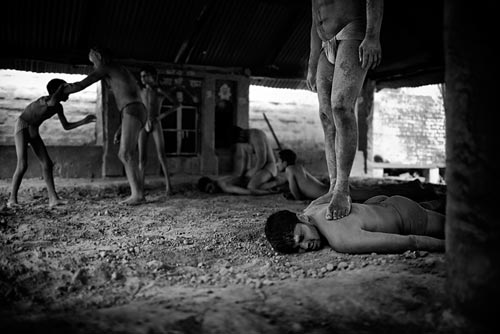 Do kiedy: 22.06.2012 Miejsce prezentacji: Galeria Obok ZPAF Ulica: Pl. Zamkowy 8 , Miasto: Warszawa, We wszystkich cywilizacjach spotkać możemy wzmianki o sztuce zapaśniczej. Antyczny – Rzym i Grecja, Chiny, Mongolia, Indie, czy Japonia. Ich powstanie wiązało się zarówno z umiejętnością przetrwania, ale też było pewnego rodzaju manifestacją specyficznej kultury ciała, życia i śmierci. Wernisaż: 23.05.2012, godz. 19 ![]() ![]() W Indiach w ciągu tysięcy lat rozwinęła się tradycyjna forma zapasów zwana kushti. Nie jest to jednak tylko regionalna, kolorowa dla widza z zewnątrz - dyscyplina sportowa – lecz styl życia ściśle powiązany z religią. Zapaśnicy żyją wszyscy razem w akharach i trenują według tradycyjnych reguł. ![]() ![]() Najważniejszy cel każdego dnia to rozwijanie „shakti” – energii niezbędnej do walki, doskonalenie umiejętności zapaśniczych i życie w czystości. Alkohol, papierosy i seks są ściśle zabronione. Każde zwycięstwo pozwala zdobyć nie tylko tytuł, ale i ogromny autorytet. ![]() Na wystawę prezentowaną w Galerii Obok ZPAF składa się kilkanaście wyselekcjonowanych fotografii z obszernego materiału, jaki autor zrealizował w trakcie swoich pobytów w indyjskich akharach. Dzielenie dnia z zapaśnikami pozwoliło Sobankowi na zaobserwowanie codziennych czynności odbywających się w szkołach zapaśniczych oraz utrwalenie na fotografiach obrazów dalekich od tych, z którymi stykamy się na co dzień. ![]() ![]() Bartosz Sobanek urodzony w 1978 roku. Z wykształcenia fizyk, zawodowo związany z informatyką. Fotograficzny samouk, dla którego Fotografia stała się motorem napędowym w każdej podejmowanej aktywności. Wciąż poszukujący własnego stylu i formy. Eksperymentujący z różnymi technikami fotograficznymi – od techniki mokrego kolodionu po fotografię cyfrową. d 2009 roku prowadzi blog fotograficzny pod adresem www.blog.sobanek.com. data dodania: 22-05-2012