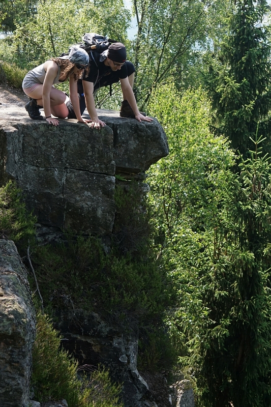 Schodzimy, idź przodem… W tej niezwykłej sytuacji wyczuwam siłę, moc. Mam wrażenie, że wpływają na to pionowe linie drzew, skał i patrzących w dół młodych ludzi. Nie boję się, choć jest wysoko. Parametry techniczne: Aparat: SONY; Model: ILCE-6000; Przysłona: f/7,1; Czas ekspozycji: 1/400 s; ISO: 500; Ogniskowa: 55 mm; © fot. Krzysztof Firkowski data dodania: 20-04-2016