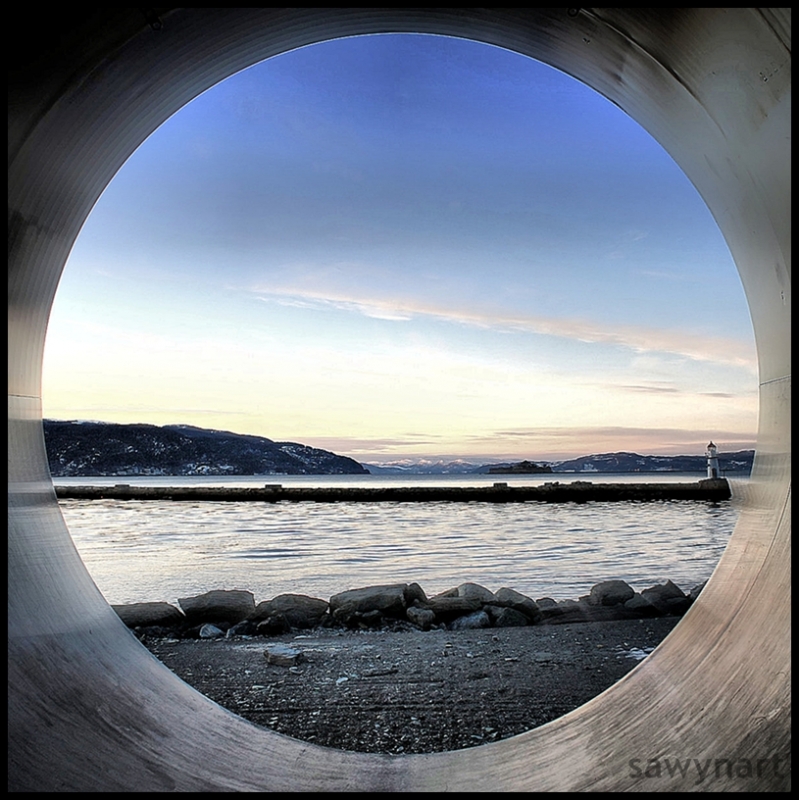 zdjęcie zrobione w takiej dużej tubie gdzie można krzyczeć i echo niesie na drugą stronę fiordu Trondheim ,Norwegia