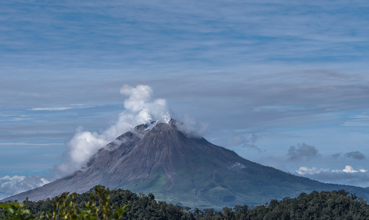 testowe Groźne piękno... Sumatra. Wulkan Sinabung wysoki na 2460m. Z jego dwóch czynnych kraterów cały czas unoszą się kłęby pary. Nie tak dawno wulkan miał potężną erupcję, która poczyniła wiele zniszczeń i zabiła setki ludzi mieszkających u jego podnóża. Parametry techniczne: Canon © fot. Joanna Zbróg data dodania: 12-10-2023