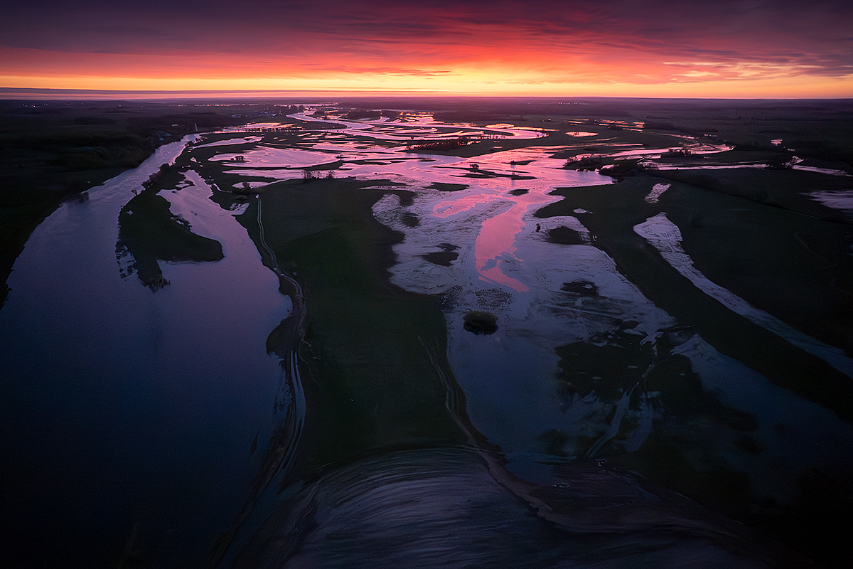 Rozlewiska Narwi przed wschodem słońca.