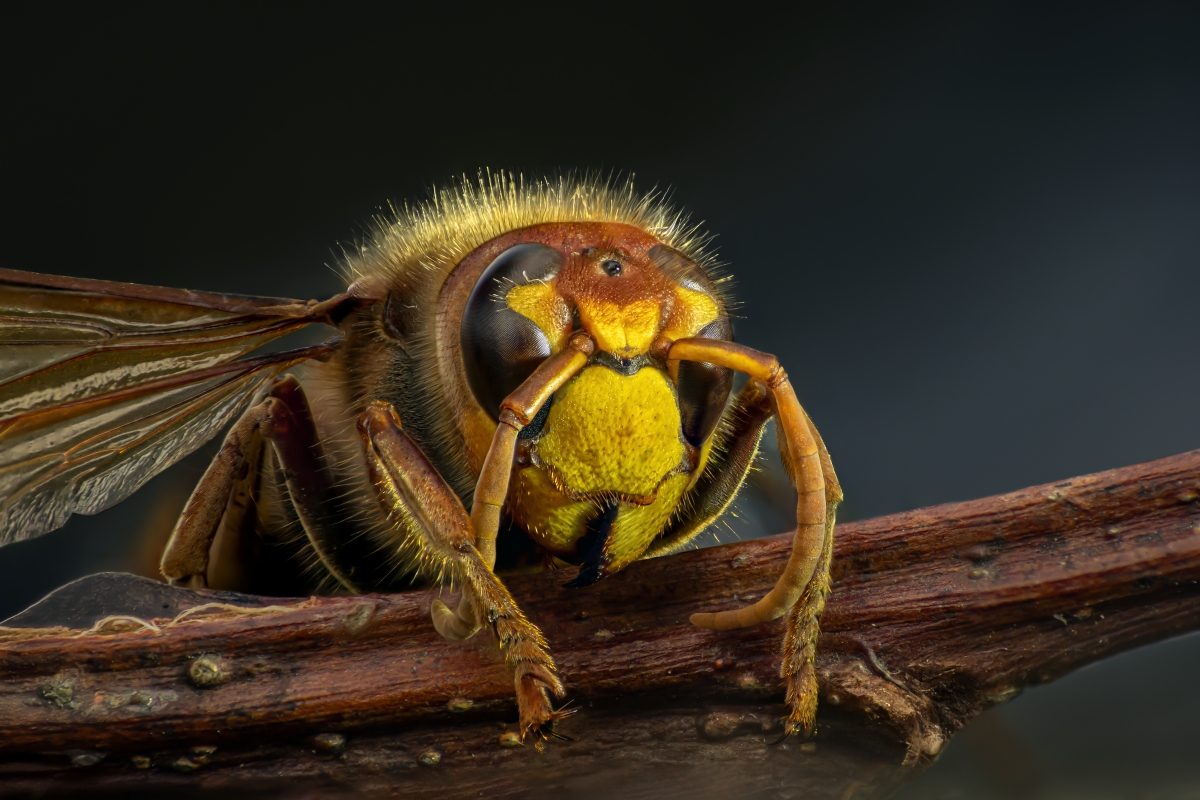 Żądłówka (Aculeata) z rodziny Osowatych (Vespidae) jaką jest "Szerszeń europejski" (Vespa Crabro), okaz żeński. Historia foty - jednego dnia widziałem dwa okazy walczące na trawniku, nie ingerowałem ale następnego dnia jednego nie było, drugi został - był już tzw. nie aktywny. Ustawiłem go przy gałązce dębowej i ustrzeliłem