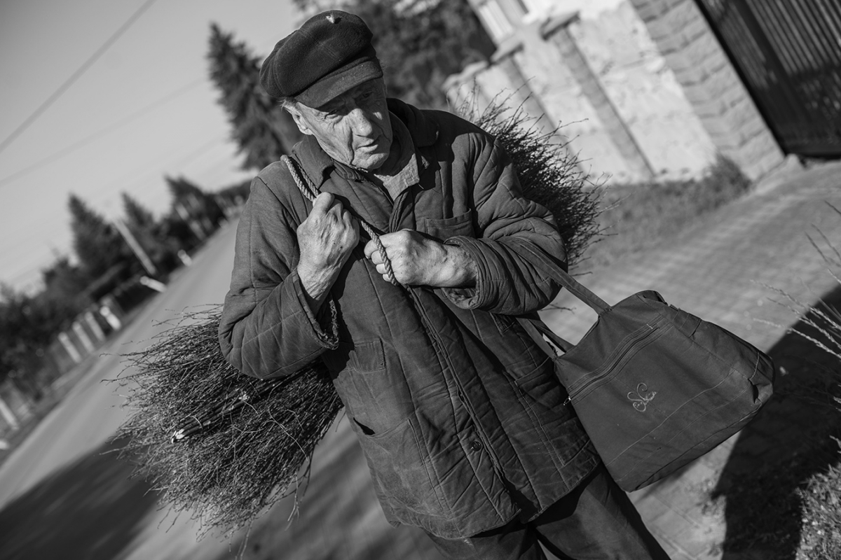Sam zbiera materiał i wyrabia miotły... W czwartki pieszo idzie na targ około 15 km żeby je sprzedać... Nigdy nikomu nie pozwala sie podwieźć...