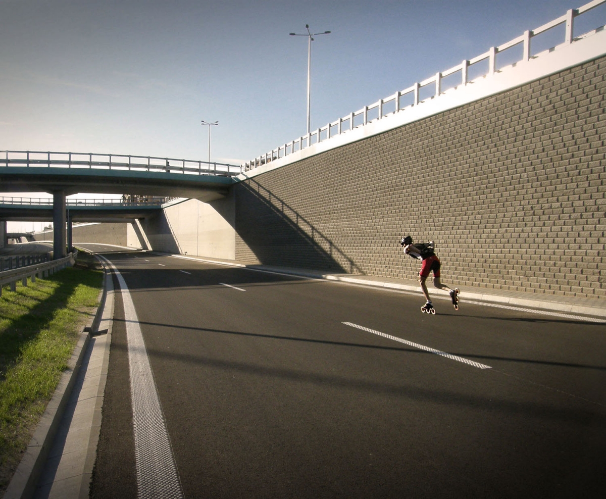 Treningi rolkaża podczas budowy Alei Niepodległosci w Białymstoku.