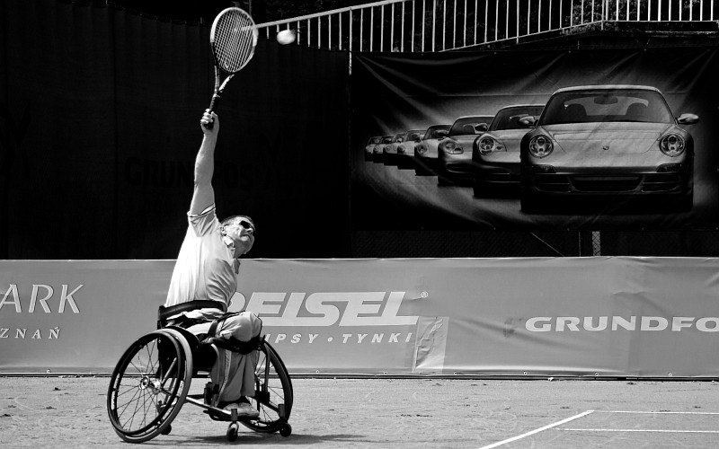 Porsche Open Na zdjęciu Albin Batycki, czołowy polski tenisista na wózkach, uczestnik IO w Pekinie Miejsce: Korty Parku Tenisowego Olimpia, podczas zawodowego turnieju ATP Poznań Porsche Open 2011 Parametry techniczne: Aparat: PENTAX Corporation; Model: PENTAX K10D; Przysłona: f/4,5; Czas ekspozycji: 1/750 s; ISO: 140; Ogniskowa: 88 mm; © fot. Maciej Kiełbowicz data dodania: 02-08-2011