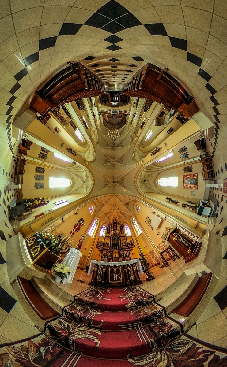 testowe Parafia Wniebowzięcia Najświętszej Maryi Panny w Wodzisławiu Śląskim Parametry techniczne: Aparat: RICOH; Model: RICOH THETA V; Przysłona: f/2,0; Czas ekspozycji: 1/13 s; ISO: 64; Ogniskowa: 1.3 mm; © fot. Grzegorz Matla data dodania: 25-04-2020