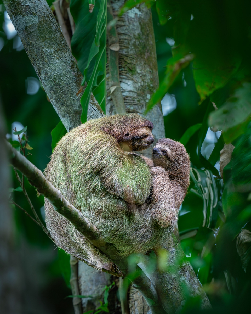 W rodzinnym kręgu Po trwającej około 6 miesięcy ciąży na świat przychodzi młody leniwiec trójpalczasty (Bradypus tridactylus). Przez kolejne miesiące będzie silnie związany z matką, która będzie go nosiła na swoim brzuchu. Początkowo, jak każdy ssak, maluch odżywia się mlekiem matki, ale szybko zaczyna próbować liści, którymi zajada się matka. W ten sposób uczy się, co jest jadalne, a czego lepiej unikać. Młode leniwce opuszczają matkę i stają się całkowicie samodzielne w wieku około 1 roku, jednak często pozostają w pobliżu miejsca swojego urodzenia. Kostaryka Parametry techniczne: Aparat: SONY; Model: ILCE-1; Przysłona: f/5,6; Czas ekspozycji: 1/500 s; ISO: 2000; Ogniskowa: 400 mm; © fot. Tomasz Szpila data dodania: 10-09-2024