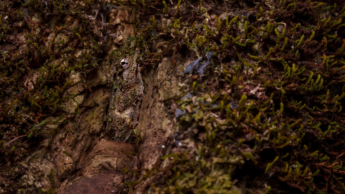 testowe Mistrzyni chowanego Na pierwszy rzut oka trudno dostrzec zwierzę na tym zdjęciu. Jednak po chwili dokładnej obserwacji można zauważyć oko, należące do niewielkiej żabki o łacińskiej nazwie Spinomantis aglavei. To nadrzewna, nocna żabka, która dni przesypia na pniach drzew. Dzięki swojemu ubarwieniu i drobnym wyrostkom na ciele idealnie wtapia się w otoczenie, stając się niemal niewidoczna. Ta mistrzyni zabawy w chowanego występuje tylko na Madagaskarze a zważywszy na to, jak trudno ją znaleźć to każde spotkanie z nią jest wyjątkowe. Rezerwat Mitsinjo, Madagaskar Parametry techniczne: Aparat: SONY; Model: ILCE-1; Przysłona: f/11,0; Czas ekspozycji: 1/80 s; ISO: 800; Ogniskowa: 90 mm; © fot. Tomasz Szpila data dodania: 05-11-2024