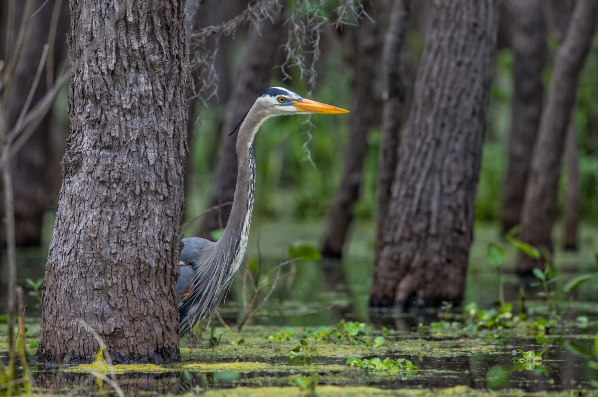 A ku-ku Czapla modra na bagnach w Teksasie, USA. Zdjecie bylo wyroznione w BPOTY2019 w kategorii Ptaki w Srodowisku. Parametry techniczne: Aparat: NIKON CORPORATION; Model: NIKON D4; Przysłona: f/5,6; Czas ekspozycji: 1/1000 s; ISO: 640; Ogniskowa: 600 mm; © fot. Artur Stankiewicz data dodania: 22-07-2020