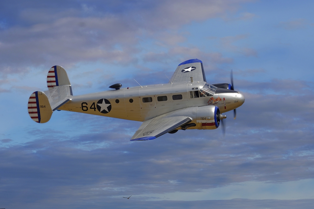 testowe BEECH C-45 nad Shuttleworth Parametry techniczne: Aparat: NIKON CORPORATION; Model: NIKON D610; Przysłona: f/10,0; Czas ekspozycji: 1/250 s; ISO: 62; Ogniskowa: 350 mm; © fot. Leszek Bean data dodania: 17-10-2018