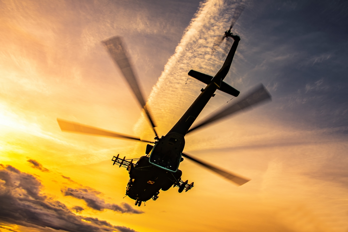 Mi-17 z 7.eds o zachodzie słońca