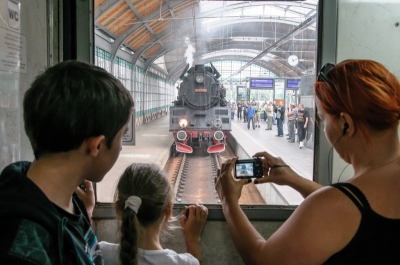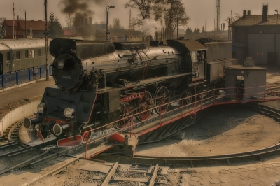 Piękna dziewczyna zafascynowana maszyną, a może maszynistą?