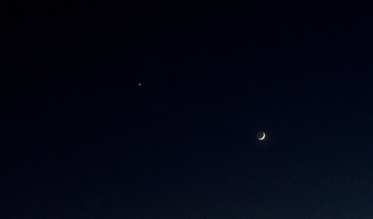 testowe Spotkanie Sierp Księżyca i Wenus prosto z puszki. Kadr wykonany z ręki przez okno balkonowe Parametry techniczne: Aparat: SONY; Model: SLT-A37; Przysłona: f/4,0; Czas ekspozycji: 1/15 s; ISO: 1600; Ogniskowa: 50 mm; © fot. Piotr Osiński data dodania: 22-06-2023