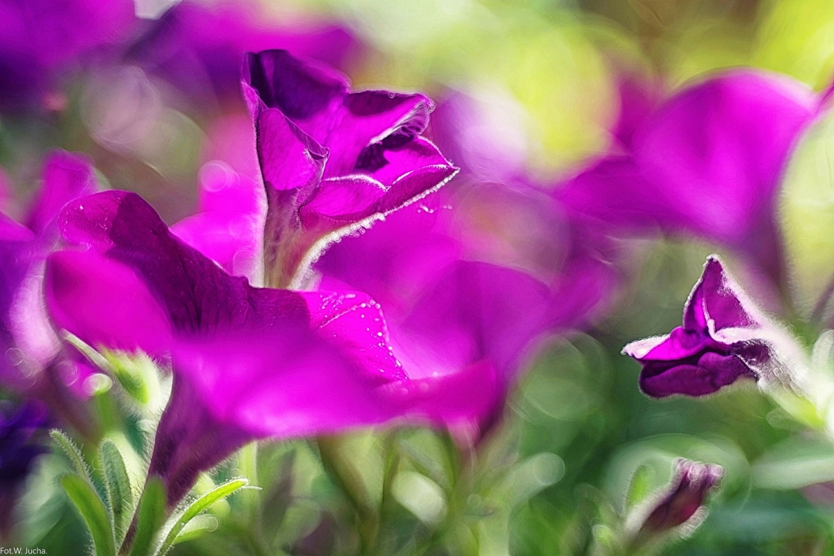 testowe Tańczące w słońcu. Kwiaty surfinii . Parametry techniczne: Aparat: RICOH IMAGING COMPANY, LTD. ; Model: PENTAX K-1 ; Przysłona: ; Czas ekspozycji: 1/125 s; ISO: 200; Ogniskowa: 55 mm; © fot. Wiesław Jucha data dodania: 20-07-2017