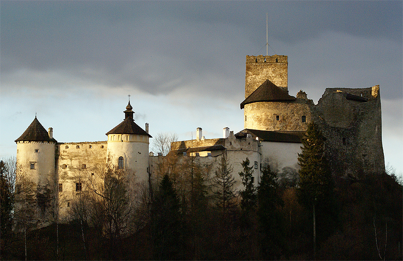 Zamek "Dunajec" w Niedzicy, późna jesień, tuż przed zachodem słońca.