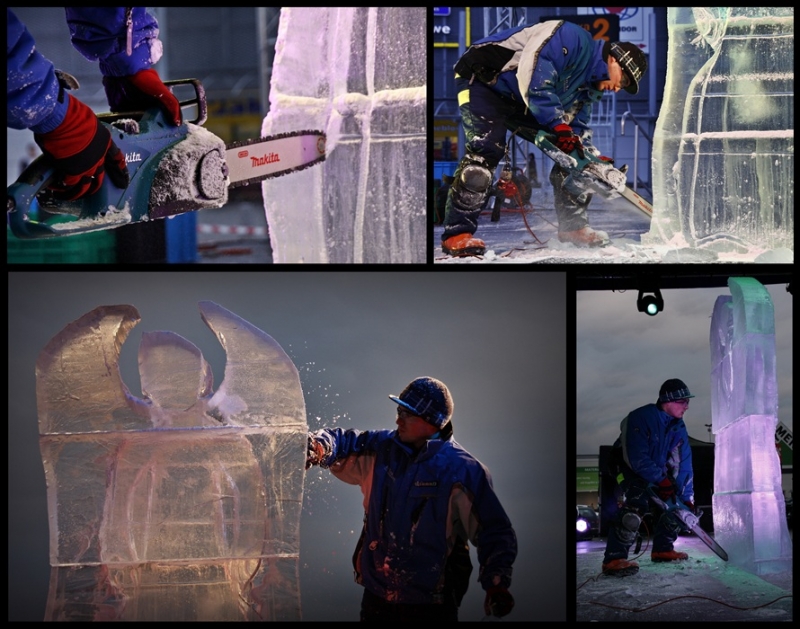 Podczas pokazu rzeźbienia w lodzie zorganizowanego przed jednym z centrów handlowych w Opolu.