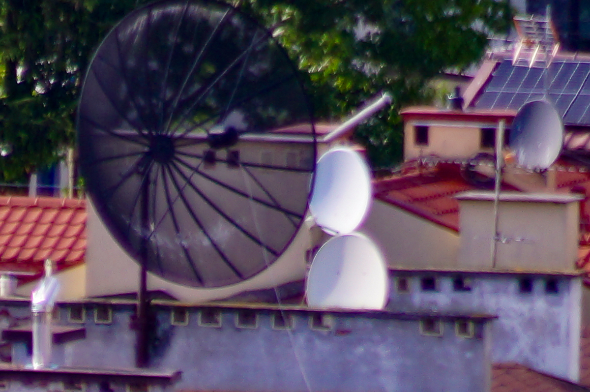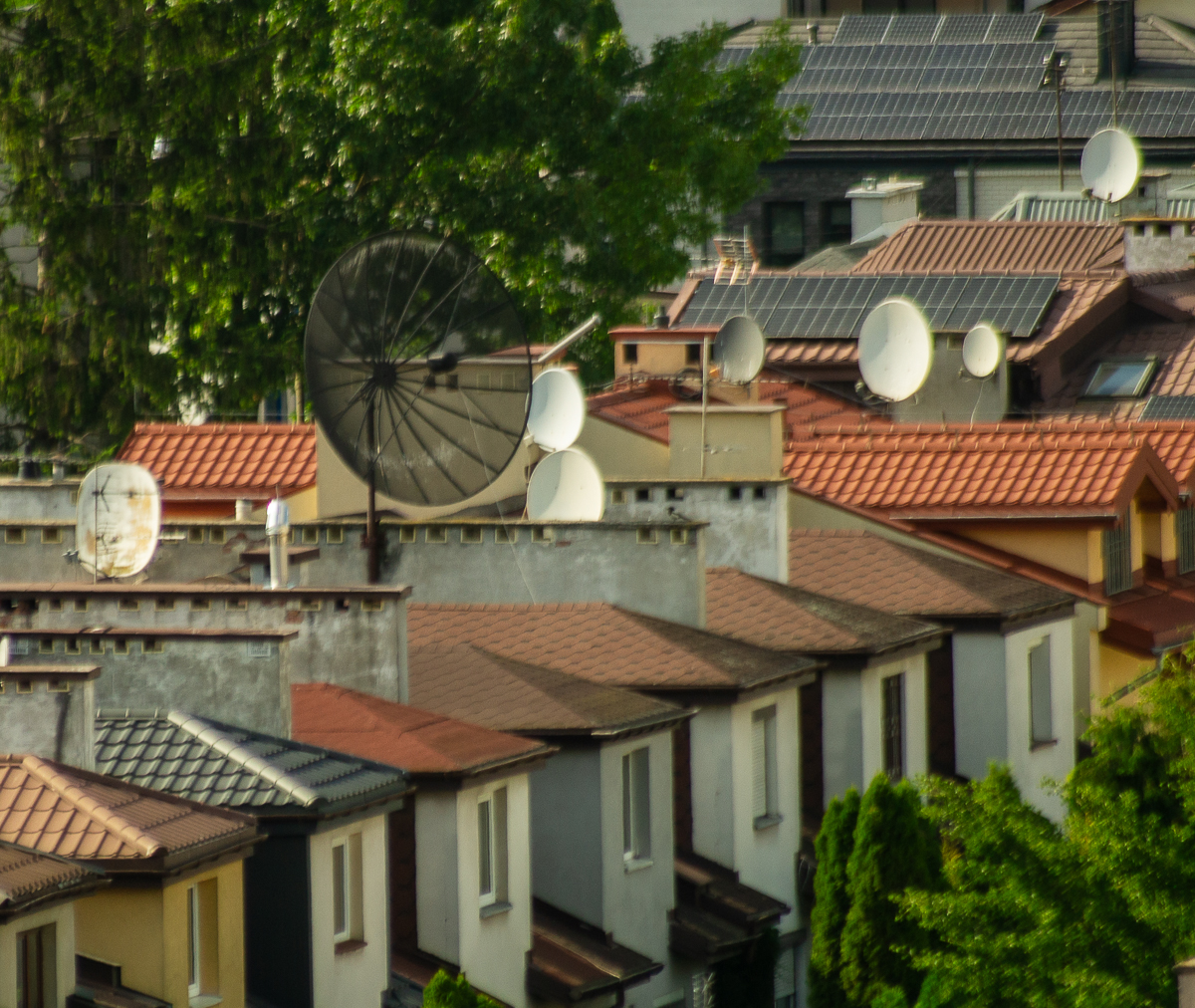 Kadr przedstawia porównanie zwykłych anten satelitarnych do ogromnej anteny