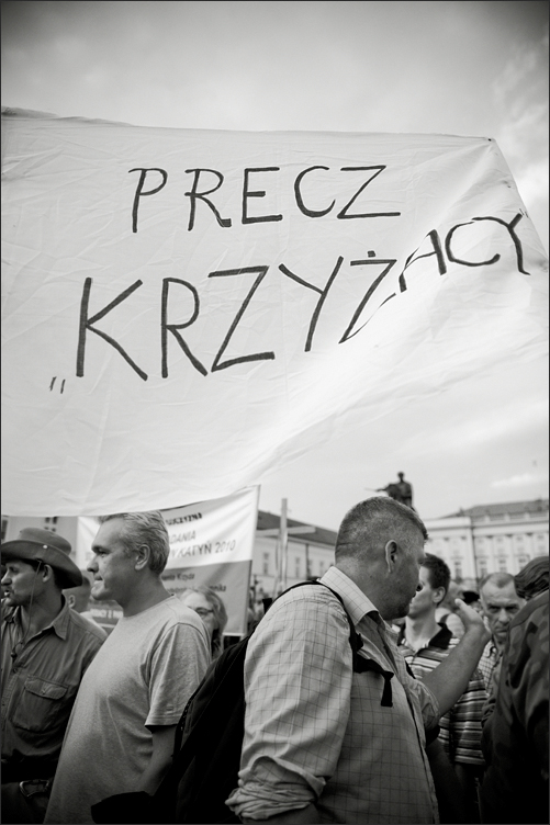 Warszawa, Krakowskie Przedmieście, przed pałacem prezydenckim, obrońcy krzyża,