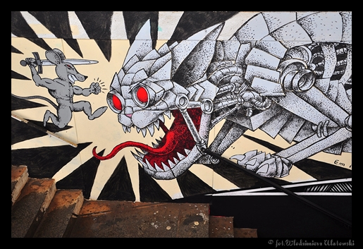 Świetne graffiti! Szkoda że nie wkomponował Pan w scenę jakiej postaci albo nawet jej fragment choćby buta. Teraz mamy do podziwiana tylko cudze malowidło a tak było by bardziej artystycznie i z większą cząstką siebie w tej fotografii.