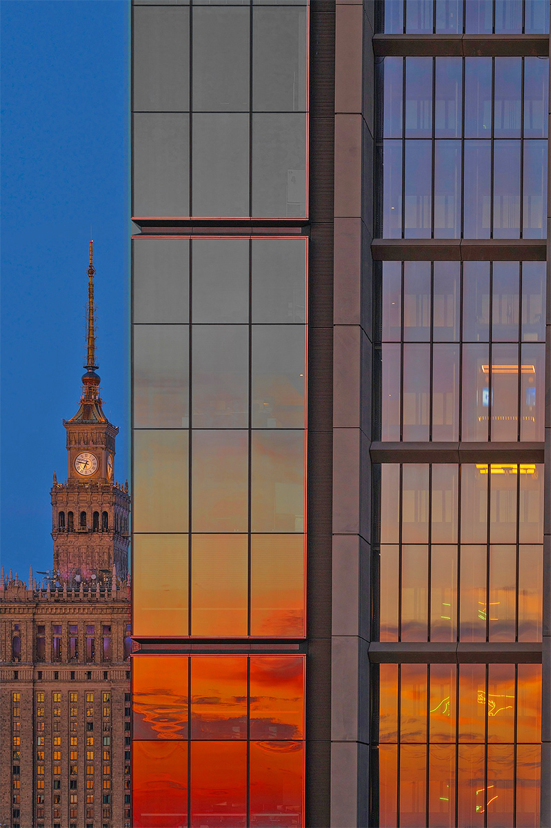 Ja jak to ja – znudzony standardowymi widokami na Warszawę, zawsze szukam czegoś mniej oczywistego 📸. Lubię kombinować, czekać na lepsze warunki i czasem powtarzać dany kadr, aż uzyskam idealny efekt. Tym razem jednak nie musiałem niczego poprawiać – ujęcie wpadło mi w oko od razu ✨. Cała magia polegała na uchwyceniu odpowiedniego momentu. Jedyną trudnością okazało się złapanie w kadrze jadącej windy 🚇 – wbrew pozorom, nie jest ona wcale taka wolna 😉. Ten kadr to dla mnie dowód, że w Warszawie zawsze można znaleźć nowe perspektywy i mniej oczywiste spojrzenie na znane miejsca.