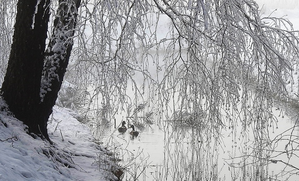 Ładne zdjęcie ale kaczkom chyba zimno?
