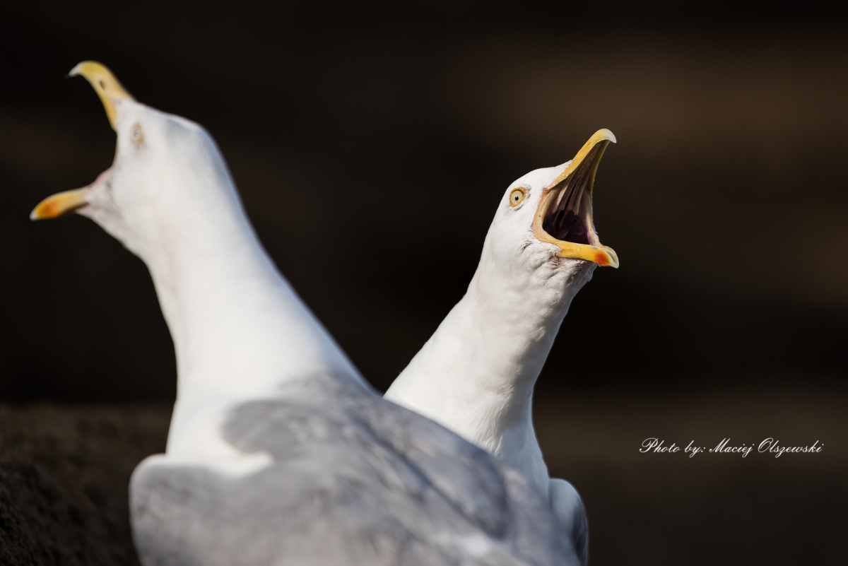 MEWI ŚPIEW MEWY SREBRZYSTE ...portret dwóch przekrzykujących się ptaków. Parametry techniczne: Aparat: NIKON CORPORATION; Model: NIKON D810; Przysłona: f/5,6; Czas ekspozycji: 1/2500 s; ISO: 400; Ogniskowa: 500 mm; © fot. Maciej Olszewski data dodania: 17-09-2018