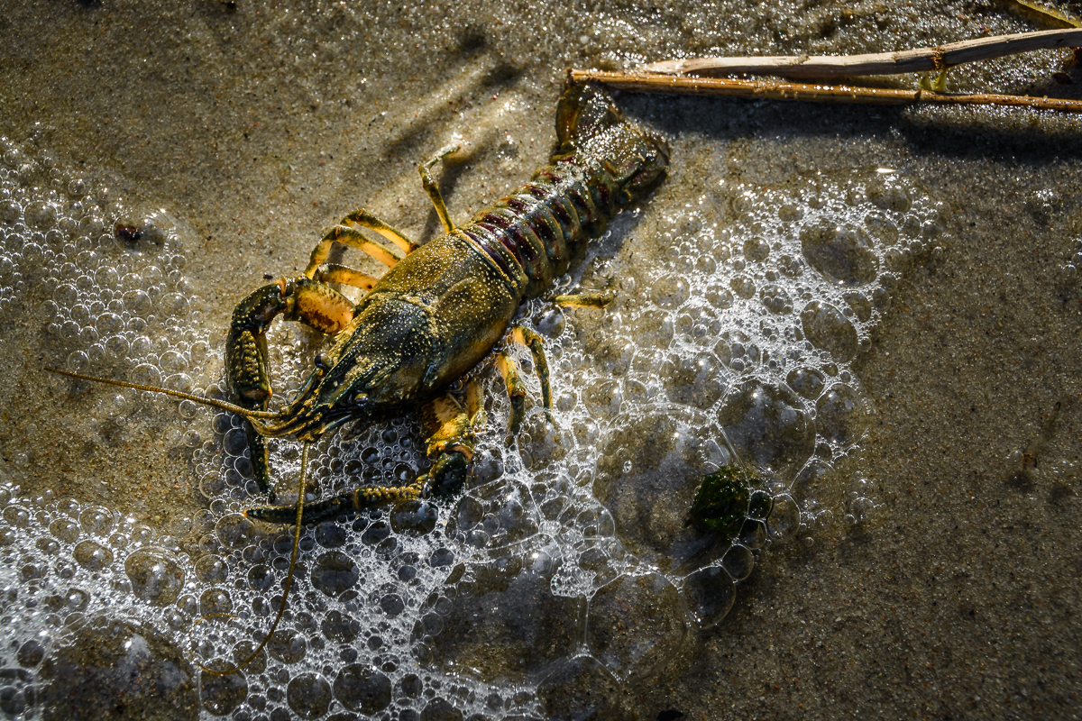 Zdjęcie wykonane podczas połowu ryb, gdzie jedyną zdobyczą był ten rak. Wyłowiony wędką, trzymał się szczypcami żyłki.
