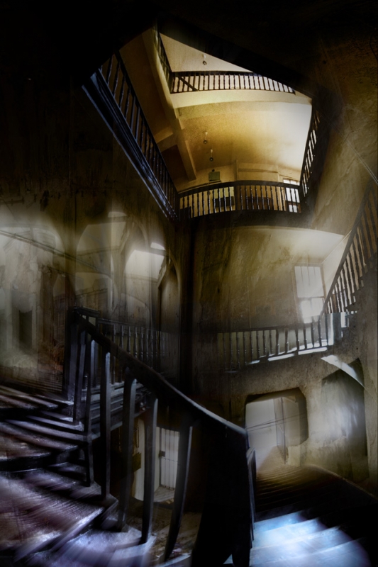 zakręcone Klatka schodowa kamienicy z Krakowskiego Kazimierza , z tapetą na ścianie w stylu cementowni Grodziec :D © fot. Anna Barandata dodania: 30-06-2009
