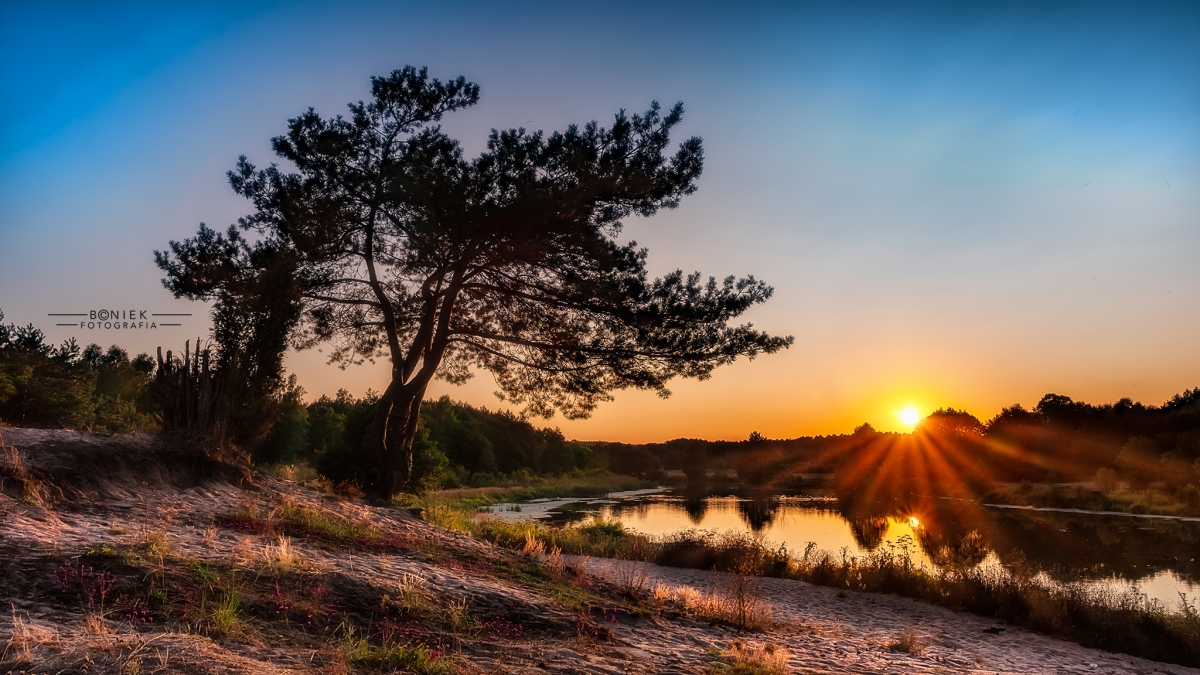 testowe Dzika Plaża - Pilica "Dzika Plaża - Pilica" - okolice Tomaszowa Mazowieckiego. Promienie zachodzącego słońca podświetlają otaczającą zieleń i kwitnące wrzosy. Parametry techniczne: Nikon D7500 / Sigma 17-50 2.8 ISO 100; 17mm; 1/200; f/8; Polar / Statyw / Wężyk / © fot. Arkadiusz Bączyk data dodania: 24-08-2019