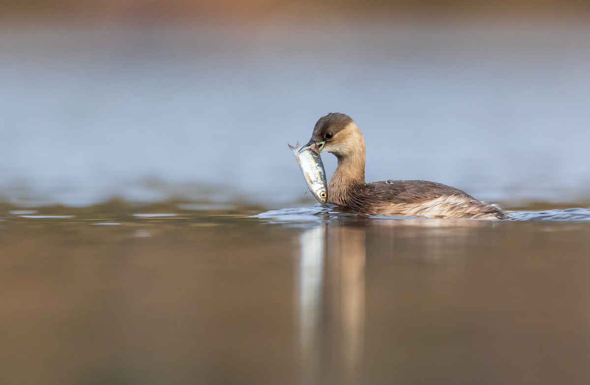 Perkozek z rybką Parametry techniczne: Canon R6 + Tamron 150-600 G2; Przysłona: f/6.3; Czas ekspozycji: 1/1250 s; ISO: 2000; Ogniskowa: 600 mm © fot. Wojciech Szynkaruk data dodania: 13-11-2023