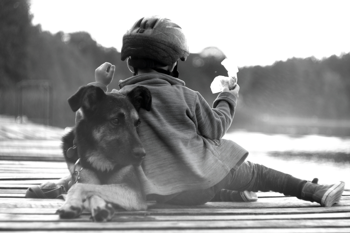 Panicz Miłosz i jego wierny obrońca Morus w lipcowy wieczór nad jeziorem Chłop
