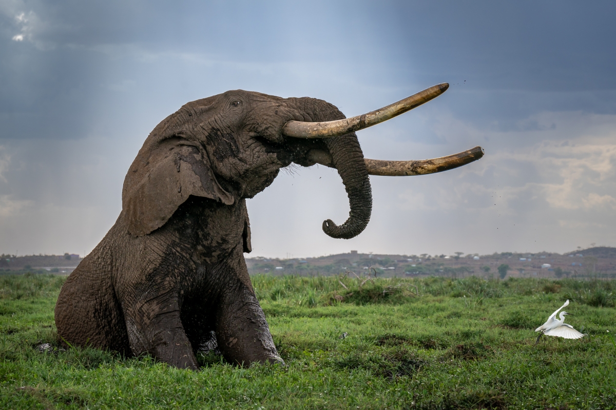 Tołstoj to kolos, którego ciosy sięgały niemal ziemi co czyniło go właścicielem jednych z największych ciosów wśród żyjących słoni afrykańskich. Na zdjęciu został uchwycony moment, w którym próbuje się wydostać z bagna rozlegającego się w pobliżu Parku narodowego Amboseli. Nie pomaga mu w tym opuchniętą i boląca lewa przednia noga. Tołstoj został w nią zraniony włócznią kilka dni wcześniej przez masajskiego rolnika, który odpędzał słonia ze swoich upraw. Niestety kilka dni po zrobieniu tego zdjęcia dowiedziałem się, że rany nie udało się wyleczyć i Tołstoj zdechł.