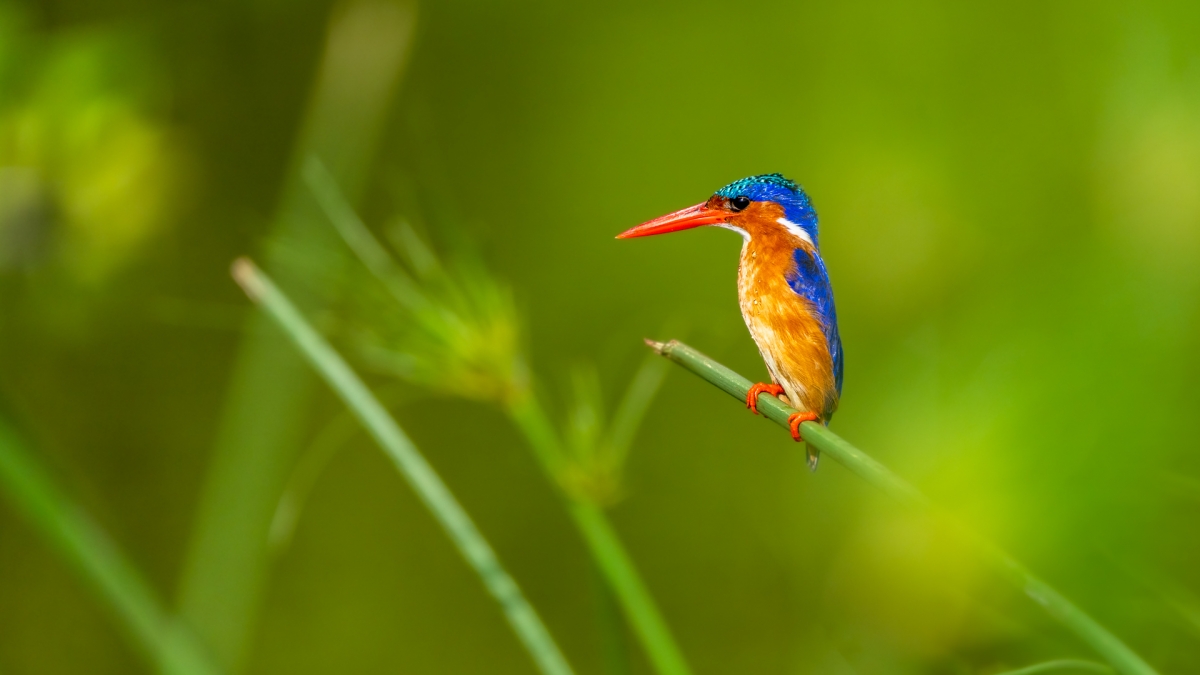 Zimorodek malachitowy to piękny ptak o zielono-niebieskim upierzeniu i długim dziobie, który poluje na ryby i owady, nurkując z wysokości. Co ciekawe gnieździ się w norze, którą wykopuje w ziemi razem ze swoją partnerką i wyścieła szkieletami ryb. Od tego pochodzi jego nazwa w języku polskim.
