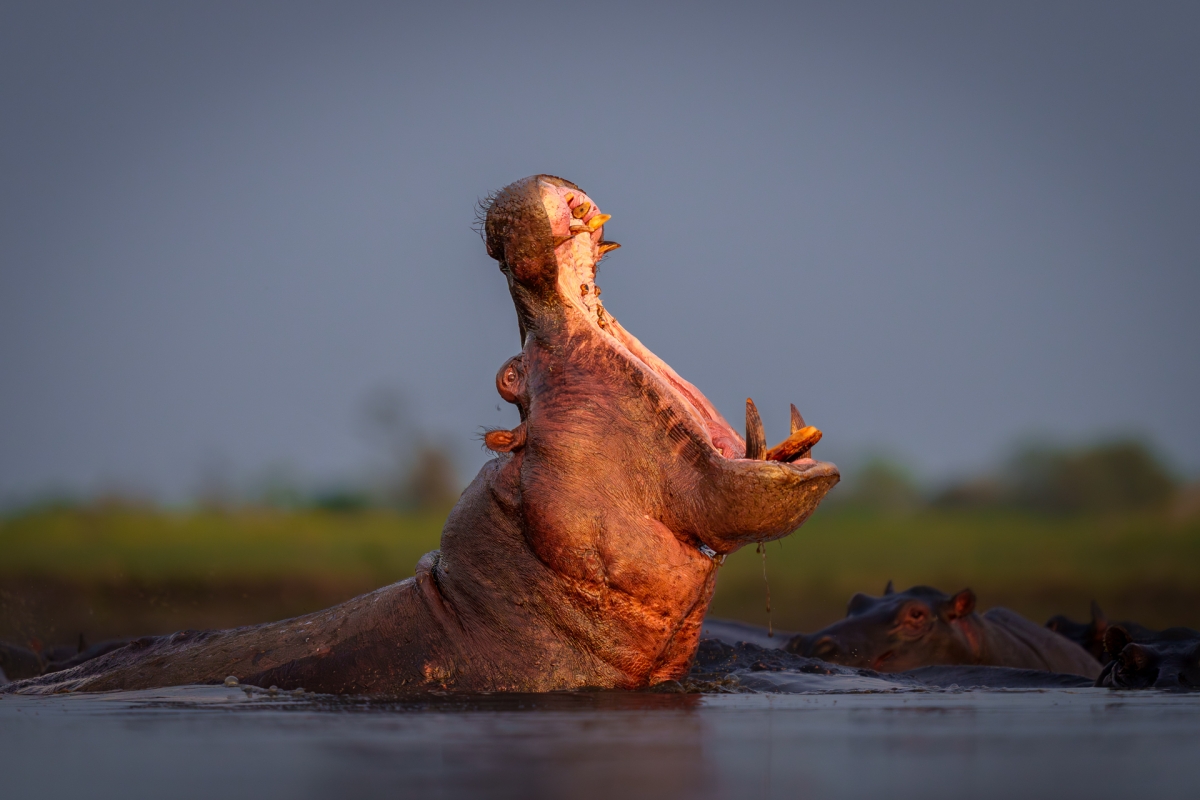 Groźny przekaz Hipopotam to jeden z najcięższych przedstawicieli afrykańskiej fauny. W parze z imponującą wagą idzie ogromna paszcza, którą jej właściciel potrafi otworzyć wyjątkowo szeroko – nawet do 150 stopni. Tą umiejętnością chwali się przed swoimi pobratymcami wyjątkowo często. Nie robi jednak tego z próżności, a w trosce o swoje terytorium. Dominujący samiec daje w ten sposób wyraźny sygnał, kto rządzi w tej sadzawce i z czym będzie się musiał zmierzyć potencjalny konkurent w walce o jego samice. Potężne kły hipopotama, osiągające nawet 50 cm długości, dodatkowo wzmacniają ten groźny przekaz. ;) Parametry techniczne: Aparat: SONY; Model: ILCE-1; Przysłona: f/2,8; Czas ekspozycji: 1/320 s; ISO: 4000; Ogniskowa: 400 mm; © fot. Tomasz Szpila data dodania: 19-01-2025